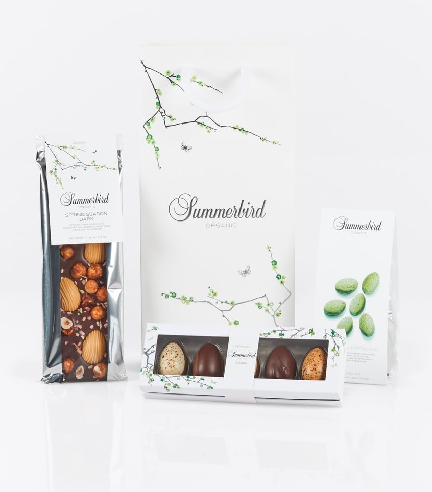 Spring Gift Bag indeholder Summerbirds raffinerede 5 Classic Eggs, som byder på variation i både tekstur og smag. Her indgår blandt andet marcipan, karamel og nougat, afstemt så ingen smag overdøver de øvrige.